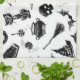 Halloween-Objekte auf dem Papier gezeichnet, dann in Illustrator zurückverfolgt, um Muster zu erstellen.