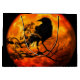 Halloween-Abendravenbild mit einem orangefarbenen Mond im Hintergrund.