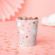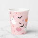 Halloween niedliche rosa Geisterpapiertasse. Modernes Halloween-Design für ein unheimliches Party! Diese Papiertasse enthält Spinnennetze, Gespenster, Kürbisse, Fledermäuse, Spinnen, Blätter, Mais, Sterne und Gänseblümchen. Diese Papiertasse ist großartig für die Geburtstagsfeiern kleiner Mädchen!