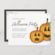 Orangenfarbene, knorchelförmige Kürbislaternen in einem Kürbispflaster. Mit einem einfachen QR-Code und Facebook-Symbol, verweisen Sie Ihre Gäste auf Ihre facebook-Veranstaltungsseite. Eine günstige Postkarte. Diese perfekten orangefarbenen Kürbis zusammen mit Salbeigrün-Blätter machen ein tolles Design für jedes Produkt. Farbige oder Aquarelleffekte. Halloween-Party niedliche Kürbis schlicht, whimsical Jack o'lanterns lantern, spoky beängstigende gruselige Halloween, Halloween-Party Einladungen, ein orange schwarz minimalistisch minimalistisch, moderne Kalligraphie Drehbuch Schriftart, whimsical Typografie Text, lächelnd Jack o'lanterns Laternen, Laternen niedliche Kürbis glücks Halloween, Herbst Herbst Herbst Party
