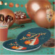 Papierteller inspiriert von einer wirklich süßen Halloween-Postkarte des amerikanischen Künstlers Ellen Clapsaddle (1865-1934). Das Bild zeigt ein kleines Mädchen mit einer Hexe in rotem Kap und spitzenem Hut. Sie ist umgeben von glühenden Jack-o'-Laterne Kürbissen (einer davon auf der Rückseite); ein weiterer Kürbis wird als Wasserkocher ausgehöhlt. Der Kessel Kürbis ist gefüllt mit kleinen Buchstaben, vielleicht Halloween Grüße? Der dunkelblaue Hintergrund hebt das Mädchen und die Kürbisse, sowie die Halloween-Nachricht (Ein Jolly Halloween) hervor. Die Bilddatei wird digital wiederhergestellt und aus dem Hintergrund abgeschieden (Juli 2021). Auch Teile des Bildes können frei bewegt werden, was eine große Hilfe für ein ausgewogenes Design ist.