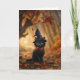 Halloween Niedliche Schwarze Katze mit Hexenhut un Karte
