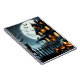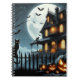 Ein beängstigendes Haus mit Vollmond, Katz, Kürbis und Fledermäusen