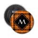 Orangefarbene und schwarze Hälfte zwischen modernen Tartan Swatch. Benutzerdefiniertes Monogramm.