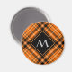 Orangefarbene und schwarze Hälfte zwischen modernen Tartan Swatch. Benutzerdefiniertes Monogramm.
