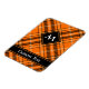 Orangefarbene und schwarze Hälfte zwischen modernen Tartan Swatch. Benutzerdefinierter Text und Monogramm.