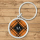 Orangefarbene und schwarze Hälfte zwischen modernen Tartan Swatch. Benutzerdefiniertes Monogramm.