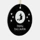 Ein Zauber mit diesem charmanten, aber einfachen keuchenden Halloween-Ornament mit Vollmond und Sternen hinter einer fliegenden Hexe. Dieses lustige Halloween-Ornament wäre ein magisch chic Dekor oder Keepake. Einfach anpassen, einfach Ihren eigenen Text in den Feldern angeben. Schriftart und Textfarben können durch Anklicken des Buttons "Anpassen" geändert werden.