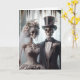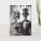 Eine Skelettbräune und ein Bräutigam in Hochzeitskleidung mit Blumenzubehör und einem Set mit Top-Hut vor einer scheußlichen Waldlandschaft