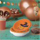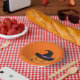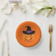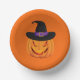 Diese Papierschale wird in einem festlichen Halloween Kürbiskürbis-Hexendruckdesign gezeigt. Passen Sie dieses Objekt an oder kaufen Sie, wie es ist. Bild