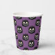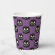 Der Halloween-Party-Papierbecher wird mit einem beängstigenden Kürbisprint gezeigt. Farbe Lila Passen Sie dieses Objekt an oder kaufen Sie, wie es ist. Börsenbild vecteezy.com