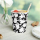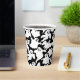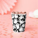 Der Papierbecher aus Halloween-Party wird mit einem Geisterdruck angezeigt. Farbe Schwarz Passen Sie dieses Objekt an oder kaufen Sie, wie es ist. Börsenbild vecteezy.com