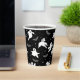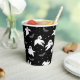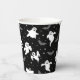 Der Papierbecher aus Halloween-Party wird mit einem Geisterdruck angezeigt. Farbe Schwarz Passen Sie dieses Objekt an oder kaufen Sie, wie es ist. Börsenbild vecteezy.com