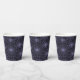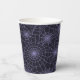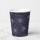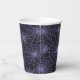 Der Papierbecher aus Halloween-Party wird mit einem Spinnennetz gedruckt. Farbe Schwarz-Lila Passen Sie dieses Objekt an oder kaufen Sie, wie es ist.