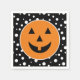 Diese Papierserviette ist in einem niedlich festlichen Halloween-Kürbisgesichtsausdruck-Design zu sehen. Passen Sie dieses Objekt an oder kaufen Sie, wie es ist. Für dieses Design bieten wir auch passende Teller an. Bild
