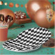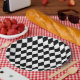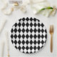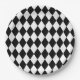 Diese Papierplatte ist in einem schwarz-weiß harlequin-Diamantdruckdesign dargestellt. Passen Sie dieses Objekt an oder kaufen Sie, wie es ist. Börsenbild vecteezy.com