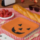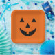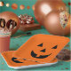 Diese Papiertafel wird in einem niedlich festlichen Halloween-Kürbisgesichtsausdruck-Design gezeigt. Passen Sie dieses Objekt an oder kaufen Sie, wie es ist. Für dieses Design bieten wir auch passende Papierservietten an. Börsenbild freepik.com