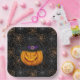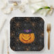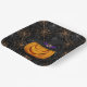 Diese Papiertafel ist in einem undurchsichtigen Halloween-Spinnennetz und Kürbisprint-Design zu sehen. Passen Sie dieses Objekt an oder kaufen Sie, wie es ist. Für dieses Design bieten wir auch passende Papierservietten an. Bild