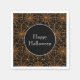 Die Papierserviette aus Halloween-Party wird mit festlichen Spinnennetzen gedruckt. Farben schwarz & orange. Passen Sie dieses Objekt an oder kaufen Sie, wie es ist. Lizenziertes Bild