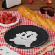 Halloween-Party Papierplatte mit Geisterdruck gezeigt.