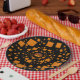 Schwarz-Orange böse Kürbis Float Quadrate Halloween Platte. Genießen Sie die leckeren Gerichte auf diesem auffallenden, orangen und schwarzen Teller.