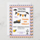 Eine niedliche Trunk- oder Leckerei-Einladung für eine Kirche, eine Nachbarschaft-HOA, eine Schule oder Einzelperson, die ein Halloween-Party für die Gemeinde hält. Ein Zickzackmuster in Schwarz, Orange & lila ist der Hintergrund für dieses moderne Design mit Kürbissen, Fledermäusen und vielem mehr. Passen Sie Ihre Party-Informationen an und bereiten Sie sich darauf vor, den Kindern Süßigkeiten auszuhändigen.