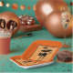 Creative Halloween party plates featuring a cute acrobat bat on the back of a funny black cat.