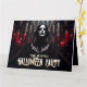 Dunkles Halloween-Party mit gotischem Stil, schwarzer Kleidung, dramatischen Make-up und rotem Kerzenlicht in einem geheimnisvollen Rahmen. Ideal für gespenstische Events, thematische Party und kreative Dekorationsideen mit dunkler, unheimlicher Atmosphäre.