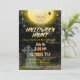 Gastgeber und Spuk Haus Halloween Einladung mit Fledermäusen und Kürbissen auf einem dunklen Mond beleuchtet Nacht.