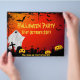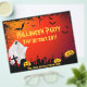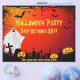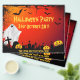 Spooky Halloween-Party Flyer mit Geist, Kürbislaternen und Friedhof