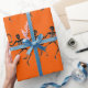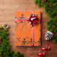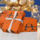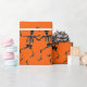 Kreatives Halloween-GIF oder Party-Dekor mit schwarzen, tanzenden Skelettreihen auf orangefarbenem Hintergrund.