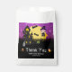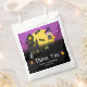 Diese lustige und spukhafte Gandtasche hat eine niedliche Hexe neben einem gekräuselten Spuk Haus. Im Hintergrund ist ein Vollmond mit Fledermäusen und ein lila Nachthimmel mit Sternen. Der Text kombiniert dekorative und serf Schriftart für ein stilvolles und modernes Aussehen. Das ist perfekt für eine Geburtstagsfeier zu Halloween-Themen.