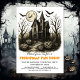 Das Spuk Haus im Zentrum dieser Einladung ist ein gotischer Showstopper - die spitzen Türme und die gewölbten Fenster locken mit einer theatralischen Bedrohung und zaubern klassische Horror Filmvibes. Die Architektur wirkt übertrieben und unheimlich, mit scharfen Dächern, die in den Nachthimmel schneiden, und Fenstern, die einen anscheinend zurückschaut. Obwohl der Hintergrund weggelassen wird, weist allein die Silhouette des Hauses auf Isolation und Rätsel hin, die durch ihre verworrene Symmetrie und die sich abzeichnende Präsenz noch verstärkt werden. Es ist der Ort, an dem man cremefarbene Bodenplatten, flackernde Kerzenlicht und vielleicht ein Geist oder zwei Lurken auf dem Dachboden erwarten würde...............Die Überschrift "FRIGHTFULLY FUN NIGHT" ist Set in einer gezackten, gotischen Schrift, die an Spuk Häuser und unheimliche Nervenkeln erinnert. während die Phrase "YOU’D BE GHOUlish TO MISS THIS PARTY!" mit einem sonderbaren, übertriebenen Serif-Schriftart spielt, der spielerisches Drama hinzufügt. Details wie Datum, Ort und UAWG werden in einer sauberen, klassischen serifenlosen Sans-Funktion dargestellt, die Kontrast und Lesbarkeit bietet. Die Typografie-Entscheidungen stellen ein lebendiges Gleichgewicht zwischen Frohsinn und Spaß her, das perfekt für eine geile Halloween-Ansammlung geeignet ist.