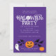 Cooles, unterhaltsames und einzigartiges Halloween-Party lädt zu jedem ein. Sie können dunkle lila und weiße Texte anpassen. Orange Halloween Kürbis Jack O'lanterns, weiße Geister und schwarz-weiße Fledermäuse auf lila. Niedlicher Spaß und ein wenig Lust für Kinder jeden Alters.