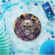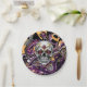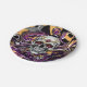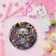 Día de Muertos oder Halloween-Party Papier Teller in schwarz, lila, gold mit einem Zuckerschädel.