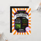 Eine lustige Halloween-Party-Einladung, die wie ein Zirkusposter aussieht, um ein Halloween-Karneval-Thema zu spielen. Das Poster folgt einem traditionellen Halloween-Farbschema aus Orange, lila, Kalkgrün, Schwarz und Weiß. Der Hintergrund ist eine orange-weiße Zirkuszelt-Sternexplosion. In der Mitte befindet sich eine schwarze Tafel, die mit Sternen und lila Punkten geschmückt ist und ein großes weißes Banner-Sprichwort "Halloween". Der gesamte Text, mit Ausnahme des "Halloween" Banners, kann geändert werden, wenn Sie auf den 'Anpassen' Button klicken. Es gibt viele Texte im Design. Wenn Sie also damit kämpfen, Ihre Details in die engen Bereiche einzufügen, zögern Sie nicht, auf "Diesen Designer fragen" zu klicken und es an Ihre Bedürfnisse anzupassen.