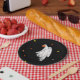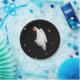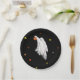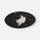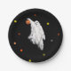 Ein lustiges Halloween-Party-Teller mit einem Geist, der einen Trick-oder-Leckerei-Kürbis trägt.