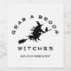 Zeig dir deine lustige Seite dieser modernen Halloween Hexen Party Schwarz-weißen Personalisierten Weinetiketten. Dieses moderne Design hat den lustigen Satz: "Nimm eine Besenwitsche" und eine schwarze Silhouette einer Hexe, die mit ihrer schwarzen Katze einen Besen reitet. Klicken Sie auf Vorlagenoption personalisieren und geben Sie den Namen oder benutzerdefinierten Text ein.