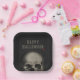 Vintage Ätzung des menschlichen Schädels auf schwarz mit gotischer Typografie - schwarz auf schwarz