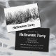 Einladung zum Halloween-Party, mit einem spitzigen Typografie-Design und einem Spuk Schwarzweiß-Holzbild. Mit Schwarz-Weiß-Schrift können Sie Ihren eigenen Text anpassen. Ein gruseliges gotisches Thema, um Ihr nächstes Kostüm- oder Halloween-Fest zu planen.
