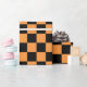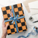 Lebhaftes und spielerisches großes kariertes orangefarbenes und schwarzes Packpapier. Dieses Packpapier eignet sich hervorragend, um jedem Anlass einen Pop Farbe hinzuzufügen, sei es Geburtstag, Jahrestag, Halloween oder einfach nur weil.