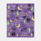 Sehr niedlich und spukhaft lila Mustertuch oder zu Halloween werfen. Lila Hintergrund mit einem bunten "Happy Halloween", Kürbis, Geist, Hexe, Mond, schwarzes Katzenmuster. Ideal, um euch zu Halloween Zeit schön und toastartig behalten!