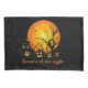 Das Kissengehäuse Set wird in Schwarz mit einem unscharfen Halloween-Aufdruck gezeigt. Passen Sie dieses Objekt an oder kaufen Sie, wie es ist.