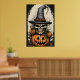 Poster mit einem Ausdruck eines Halloween-beängstigenden Schädels. Passen Sie dieses Objekt an oder kaufen Sie, wie es ist. com