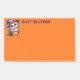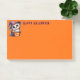 Post it note ist in einer orangefarbenen Farbe mit einem festlichen Eukalyptusprint zu sehen. Passen Sie dieses Objekt an oder kaufen Sie, wie es ist. Lizenzierte Printwerbung