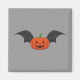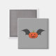 Eine Abbildung eines niedlichen Cartoon zwischen einer orangefarbenen Kürbisfledermaus mit schwarzen Flügeln. Dieses magische Kreaturendesign ist eine Geschenkidee für Zauber- oder Zauberfreunde und Leckerei- oder Trickliebhaber.