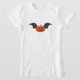 Eine Abbildung eines niedlichen Cartoon zwischen einer orangefarbenen Kürbisfledermaus mit schwarzen Flügeln. Dieses magische Kreaturendesign ist eine Geschenkidee für Zauber- oder Zauberfreunde und Leckerei- oder Trickliebhaber.