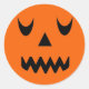 Kleiner Rundformaufkleber mit einem grafischen Druck eines Halloween Kürbisgesichts. Passen Sie dieses Objekt an oder kaufen Sie, wie es ist.