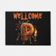 Eine halloween lustige Kürbis-Jack-o'-Laterne in Form des Buchstabens "P" mit einer Flammenlampe.