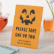 Ein personalisierbares Halloween-Bonbons-Schild, ideal für lass Trick oder Wächter wissen, dass sie eine oder zwei Leckereien nehmen können. Das Design zeigt Desteis Silhouette-Form eines fröhlichen und lächelnden Halloween Kürbisgesichts in schwarzer Farbe. Die Hintergrundfarbe ist orange. Es gibt auch einen personalisierbaren Textbereich, um glückliches Halloween zusammen mit einem Namen zu wünschen.